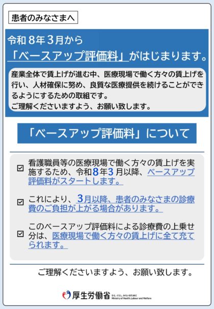 ベースアップ評価料加算開始のお知らせ
